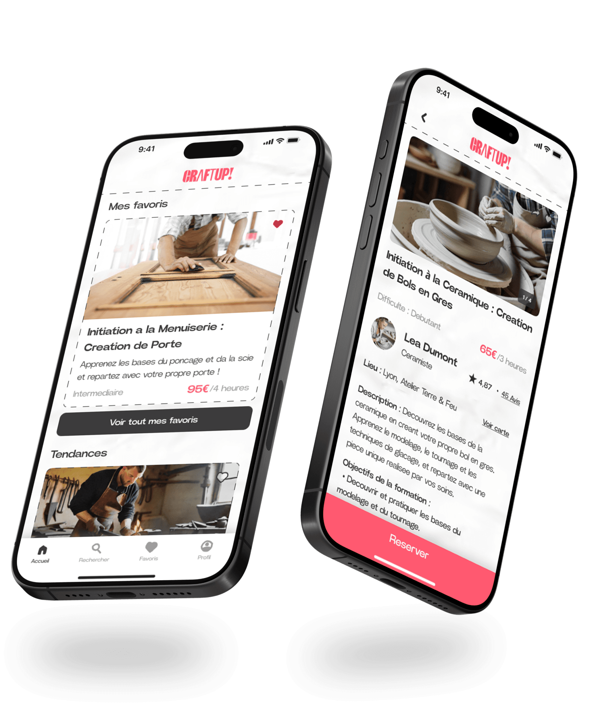 Découvrez CraftUp, l'application qui connecte passionnes et artisans autour de formations uniques : céramique, maroquinerie, et bien plus ! Réservez vos ateliers en un clic ou partagez votre savoir-faire en tant que pro. Une expérience intuitive et inspirante vous attend !