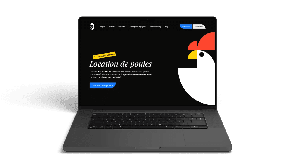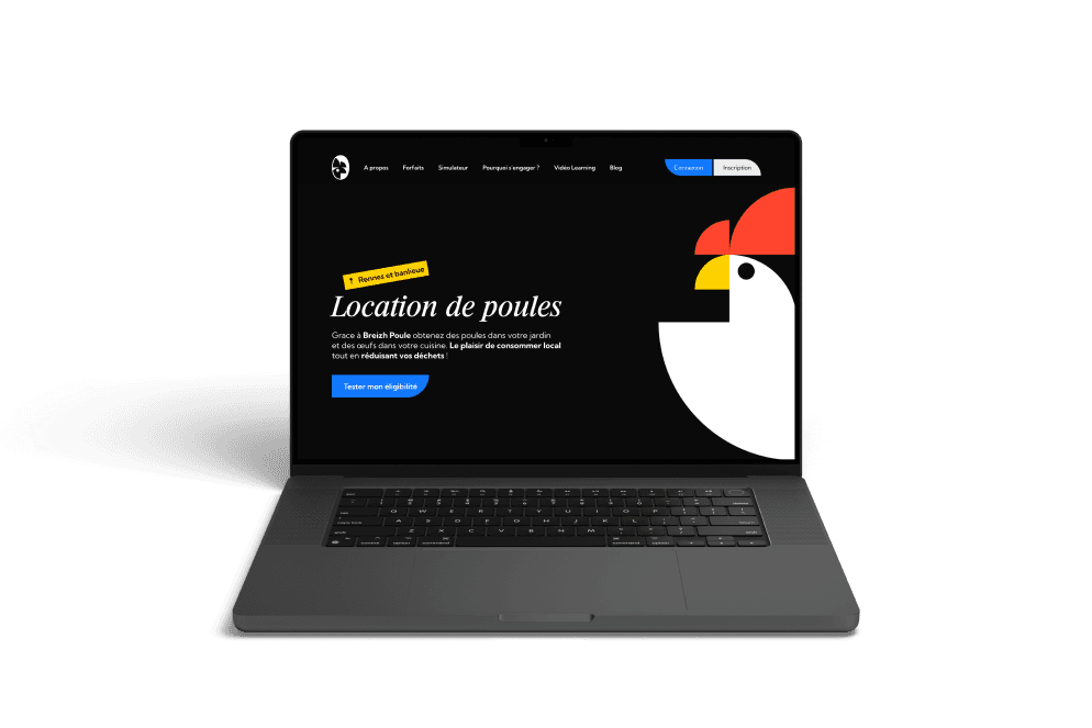 Breizh Poule est une startup innovante qui propose des abonnements pour adopter des poules et bénéficier de leurs avantages (réduction des déchets et oeufs frais). L'expérience utilisateur repose sur un processus simple et fluide : les utilisateurs répondent d’abord a un formulaire pour vérifier leur éligibilité, avant de pouvoir souscrire a un abonnement adapte. Le service est actuellement disponible uniquement autour de Rennes.