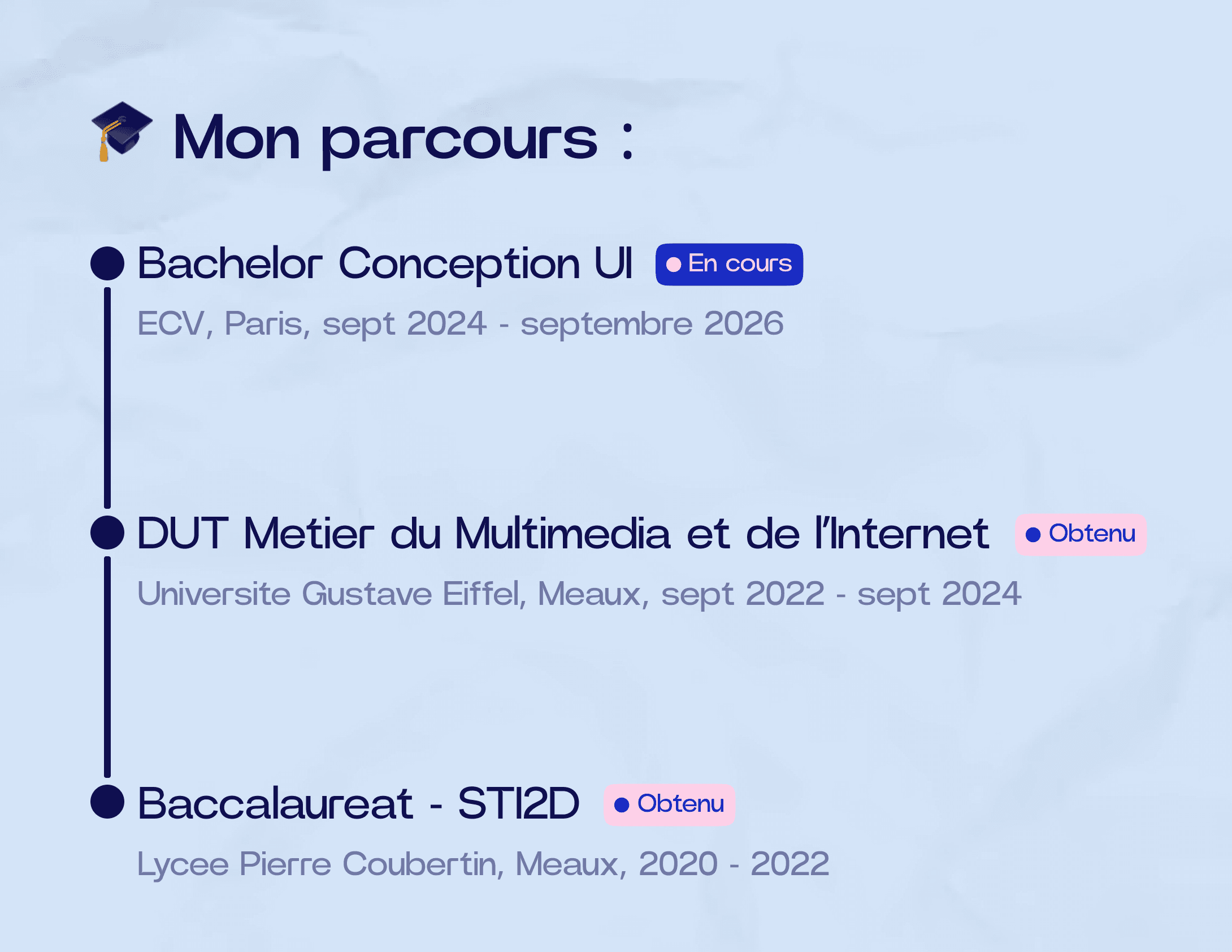 Actuellement étudiant en Bachelor Conception UI à l’ECV Paris et alternant chez Ublo, je suis passionné par l’UX/UI Design et animé par la volonté de créer des expériences digitales à la fois esthétiques et intuitives.